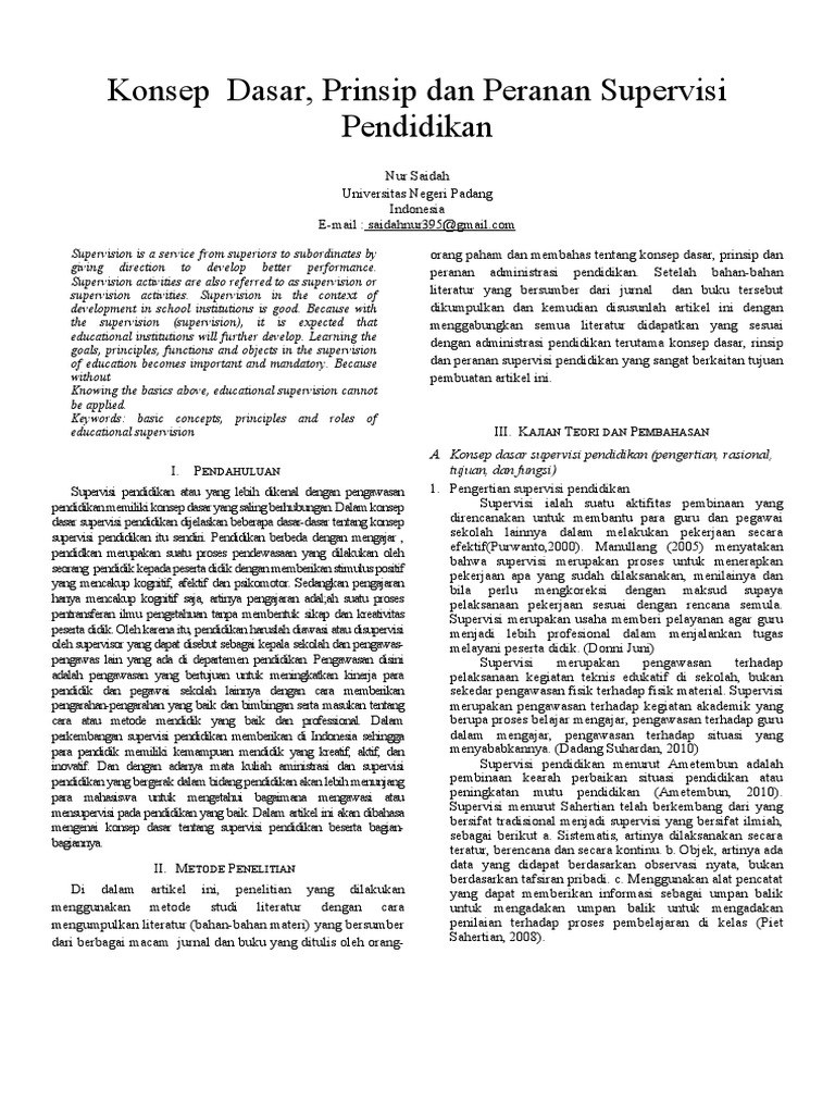 Konsep dasar prinsip dan peranan supervisi pendidikan